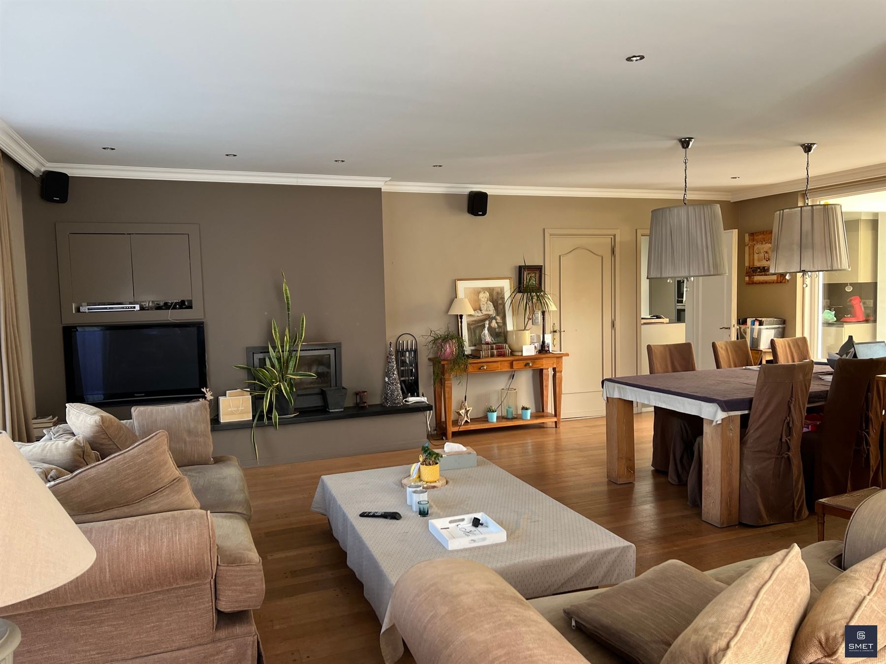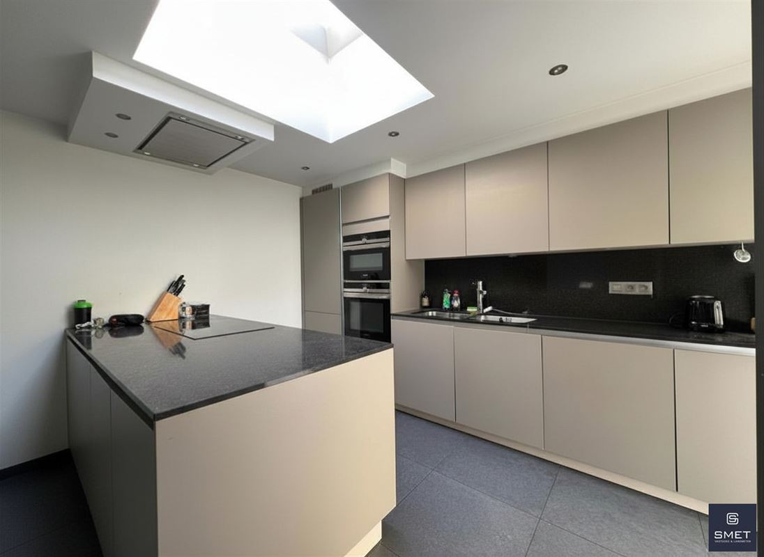 Binnenin vind je een grote inkomhal en apart toilet, geniet je van een zeer ruime leefruimte met veel lichtinval, een praktische keuken die voldoende werk- en opbergruimte biedt en voorzien is van alle comfort.